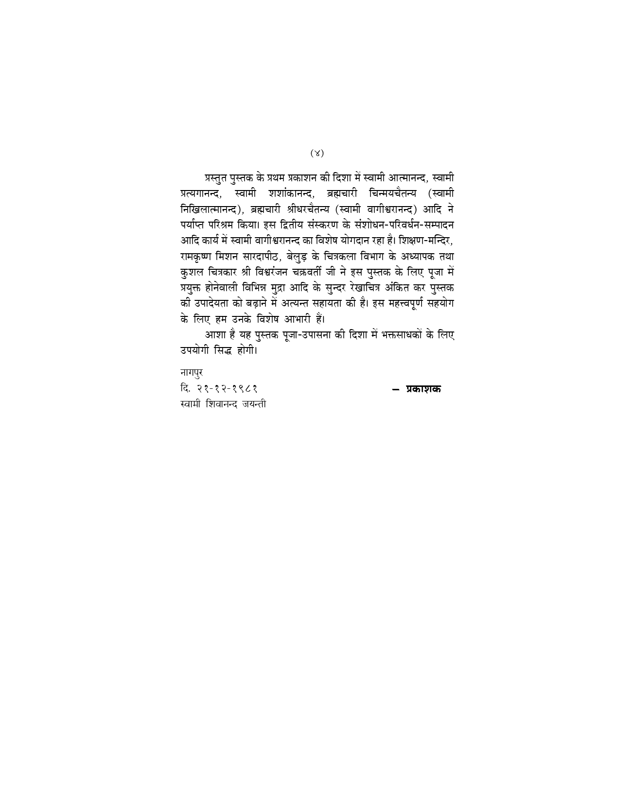 इसका पहला संस्करण इतने शीघ्र समाप्त हो गया यही इसकी लोकप्रियता का प्रमाण है। वस्तुत: इस पुस्तक का प्रकाशन एक बड़े अभाव की पूर्ति है। युगावतार भगवान् श्रीरामकृष्णदेव के लक्ष लक्ष भक्तगण विश्व भर में फैले हुए हैं। उनमें से बहुतों की यह कामना रही है कि श्रीरामकृष्णदेव की विधिवत् पूजा-उपासना के लिए कोई प्रामाणिक साहित्य हिन्दी में उपलब्ध हो ताकि हिन्दी जाननेवाले बहुसंख्य भक्त उससे लाभ उठा सकें। इस माँग की पूर्ति के लिए उद्बोधन कार्यालय, कलकत्ता से प्रकाशित बँगला पुस्तक ‘श्रीरामकृष्णपूजापद्धति’ का आधार लेकर मूल बँगला पुस्तक के संकलनकर्ता, रामकृष्ण संघ के वरिष्ठ संन्यासी स्वामी हितानन्दजी के प्रत्यक्ष निर्देशन में प्रस्तुत पुस्तक की रचना की गयी थी। इस दूसरे संस्करण में अनेक आवश्यक परिवर्धन एवं संशोधन किये गये हैं जिससे पुस्तक की उपयोगिता और भी बढ़ गयी है। प्रस्तुत संस्करण में ‘पूजा-परिचय’ शीर्षक से एक नया अध्याय जोड़ दिया गया है, जिसमें पूजापद्धति के अन्तर्गत विविध आवश्यक विधियों के मर्मार्थ एवं उद्देश्य को समझाया गया है तथा पूजासम्बन्धि अनेक ज्ञातव्य विषयों का विवरण दिया गया है। पूजनप्रेमी सज्जनों का आग्रह देखकर इस संस्करण में हनुमानजी एवं शिवजी की पूजाविधियों के अलावा श्रीकाली, श्रीदुर्गा, श्रीकृष्ण एवं श्रीरामचन्द्रजी की सामान्य पूजा-विधियाँ भी जोड़ दी गयी हैं। यह परिवर्धन एवं संशोधन आदि स्वामी हितानन्दजी के निर्देशानुसार ही किया गया है।