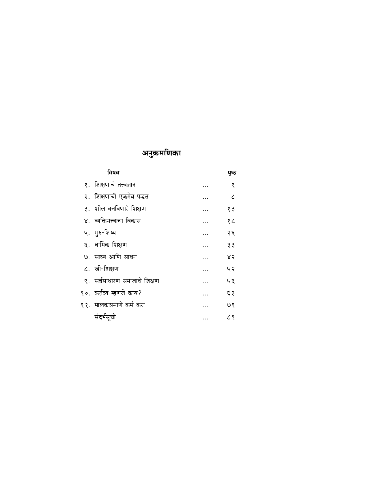 स्वामी विवेकानंदांचे दैवी व्यक्तिमत्त्व त्यांच्या चैतन्यमय वाणीत पुरेपूर प्रतिबिंबित झाले आहे. त्यांच्या या व्यक्तिमत्त्वाचे स्वरूप त्यांच्या शिक्षणविषयक विचारांत देखील स्पष्ट रीतीने दिसून येते. स्वामीजींच्या मते ‘मनुष्यत्व’ निर्माण करणे हेच शिक्षणाचे मुख्य कार्य होय. म्हणूनच त्यांनी आपल्या निरनिराळ्या व्याख्यानांतून शिक्षणाचे उद्दिष्ट, त्याची मूलभूत तत्त्वे, शिक्षक व शिष्य यांमधील संबंध, स्त्रीशिक्षण, सर्वसाधारण जनतेचे शिक्षण इत्यादी महत्त्वपूर्ण विषयांवर आपले मौल्यवान नि ओजस्वी विचार प्रगट केले आहेत. भारताच्या नवोदित स्वातंत्र्यकालात स्वामीजींचे हे विधायक विचार योग्य मार्गदर्शन करून त्याला खात्रीने प्रगतिपथावर अग्रसर करतील.