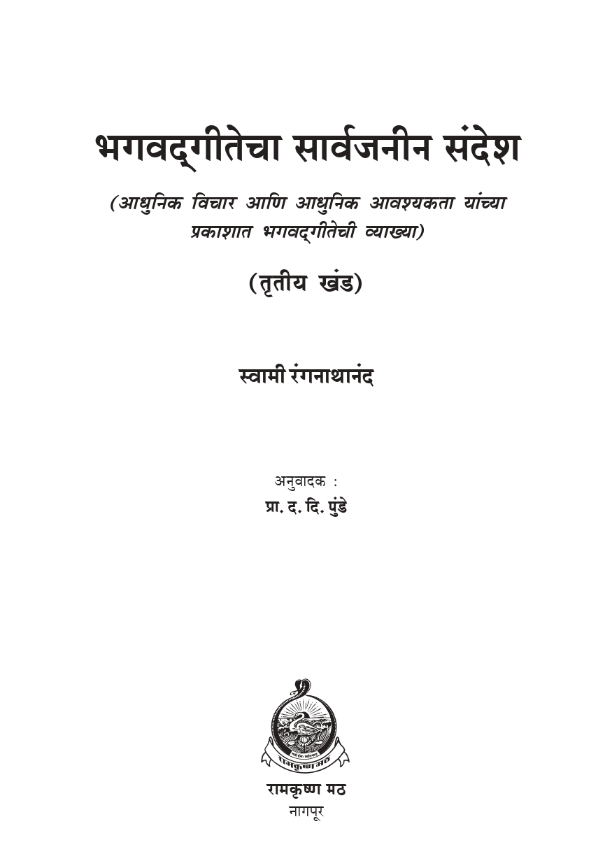 Contributors : Swami Ranganathananda, Dr. Ananta Adawadkar, Sri D. D. Punde
