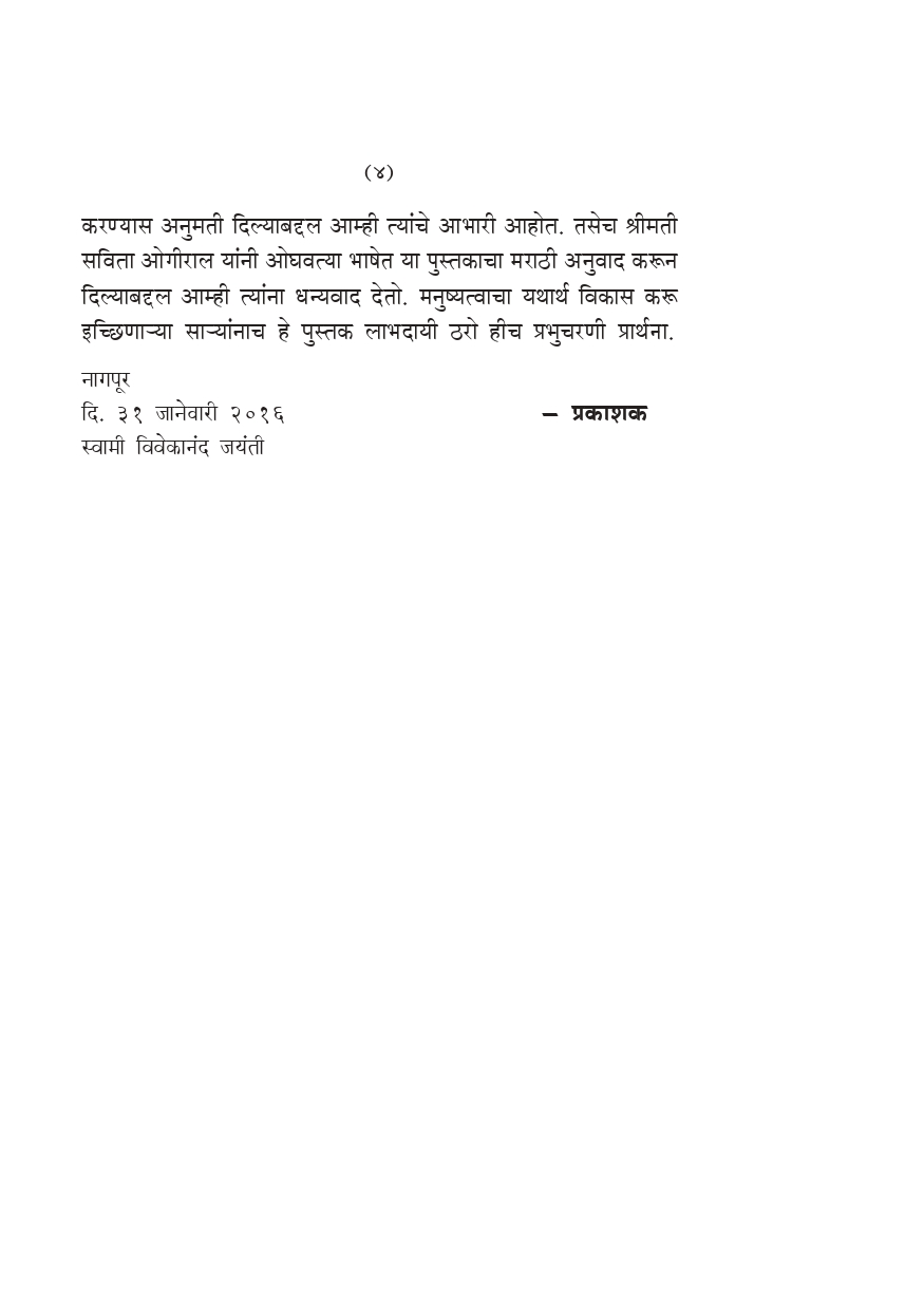 मुळात हिंदीतून दिली गेलेली ही लहान लहान प्रवचने केवळ विचारप्रवर्तकच नव्हे तर विचारांना सुयोग्य दिशा आणि गती देणारीही आहेत. जीवनसंग्रामाला धैर्याने आणि नैतिकतेने सामोरे जाऊन क्रमशः उन्नत होण्यास.ाठी आवश्यक असे अनेकानेक धडे आपल्याला यातून मिळतील. या पुस्तकातून प्रेरणा प्राप्त होऊन आदर्शवाद आणि वास्तविकता यांचे संतुलन राखणारे, नैतिक-आध्यात्मिक मूल्ये जोपासणारे स्वामी विवेकानंदप्रणीत मनुष्यनिर्मितीचे कार्य साध्य होईल.