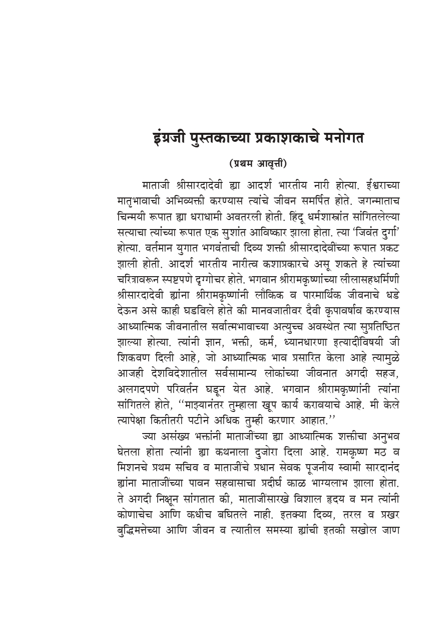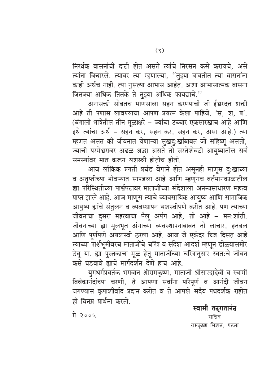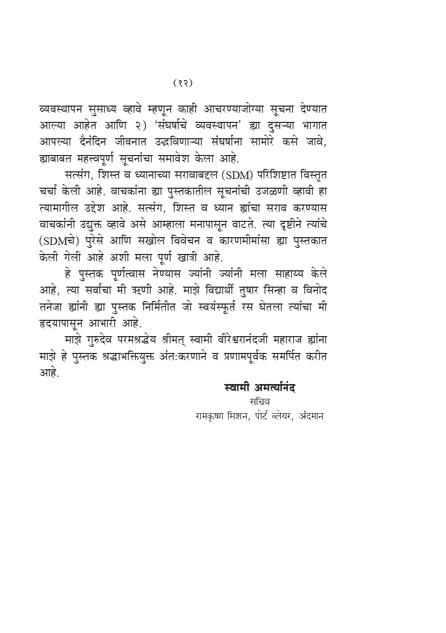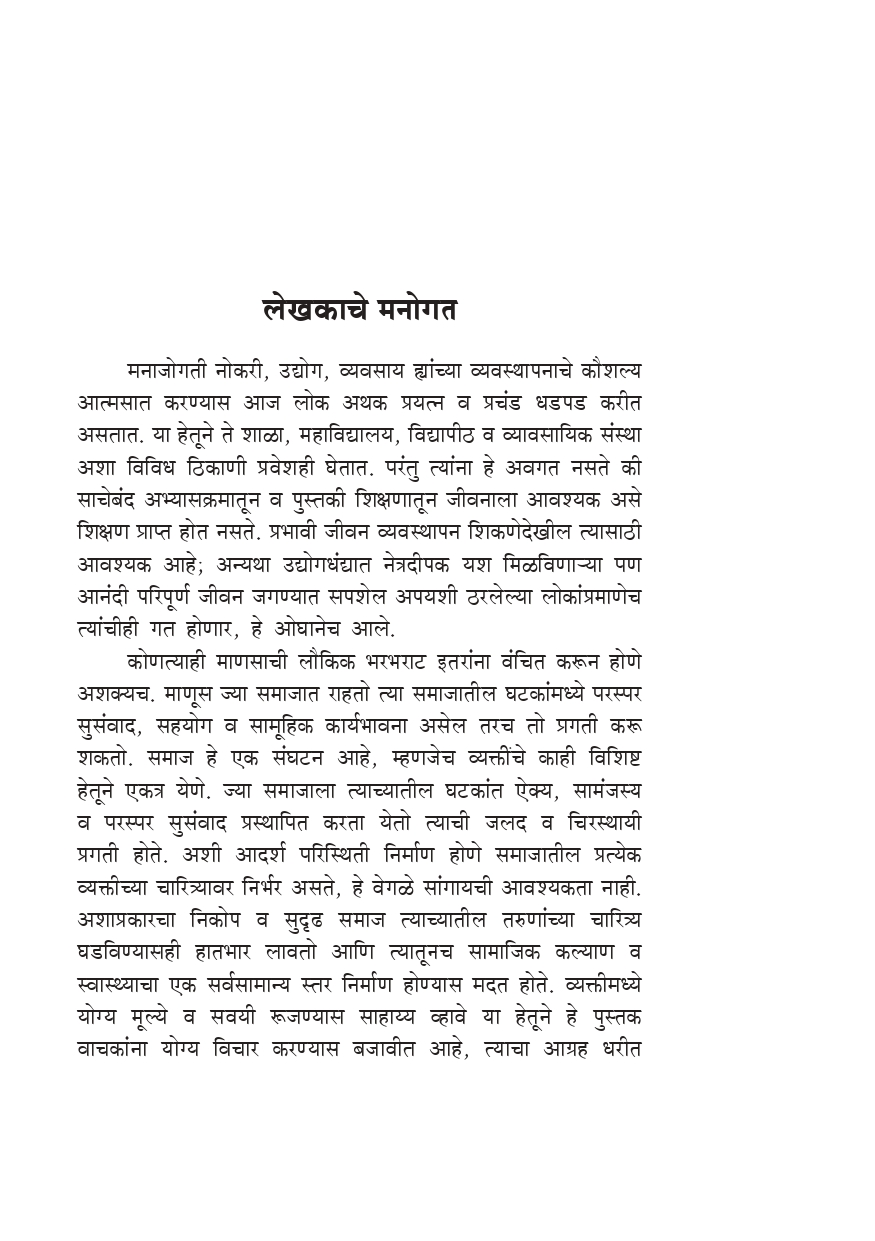मूळ इंग्रजी पुस्तक ‘Effective Life Management’ ह्याचा हा मराठी अनुवाद आहे. माताजी श्रीसारदादेवींच्या १५०व्या जयंतीनिमित्त हे पुस्तक सर्वप्रथम रामकृष्ण मिशन, पाटणाद्वारे २००५ मध्ये प्रकाशित करण्यात आले होते. हे थोड्या अवधीतच अतिशय लोकप्रिय झाले. जीवन व्यवस्थापन ह्या विषयावरील पुस्तकांना समाजातून जी प्रचंड प्रमाणात मागणी होत आहे त्यावरून लोकांना वैयक्तिक व सामाजिक अशा दोन्ही पातळींवर त्यांचे जीवन अर्थपूर्ण होण्यास व्यवहार्य मार्गदर्शन मिळण्यासाठी, ज्वलंत इच्छा व तातडीची गरज आहे, हे प्रकर्षाने प्रत्ययास येते. खरे यश संपादण्यास इच्छाशक्तीचा विकास किती आवश्यक आहे.